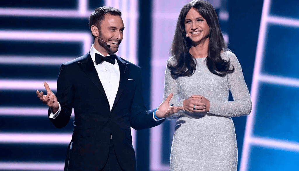 לאחר 12 שירים, Mede מודה לנציג פולין, ומעבירה ל-Zelmerlöw באולם שבו מתרחשת מסיבת האירוויזיון וצפיית ההמונים. הוא מראיין את Carola ו-Loreen. קטע מביך עם Carola, שבו Zelmerlöw קוטע אותה בזמן שהיא שרה את "הללויה" של חלב ודבש. הפייבוריט של Zelmerlöw בכל הזמנים הוא אגב ארמניה 2009, של קרולה – ישראל 1979 כמובן, ושל לורין – שבדיה 2015. נו באמת. Zelmerlöw מעביר להופעה האוסטרלית והתחרות ממשיכה.