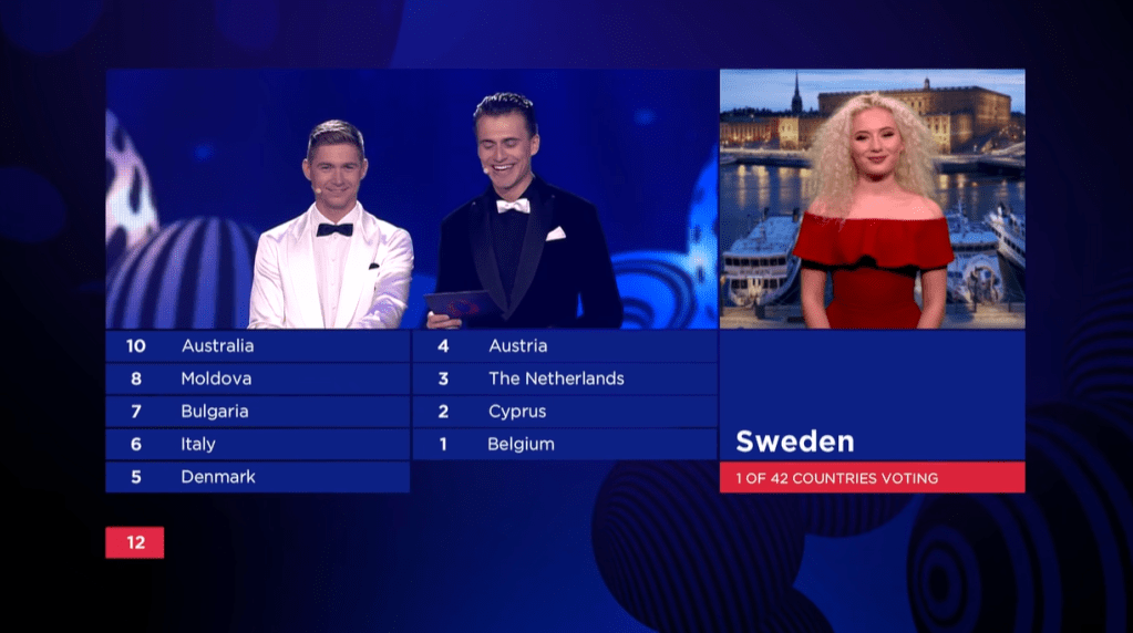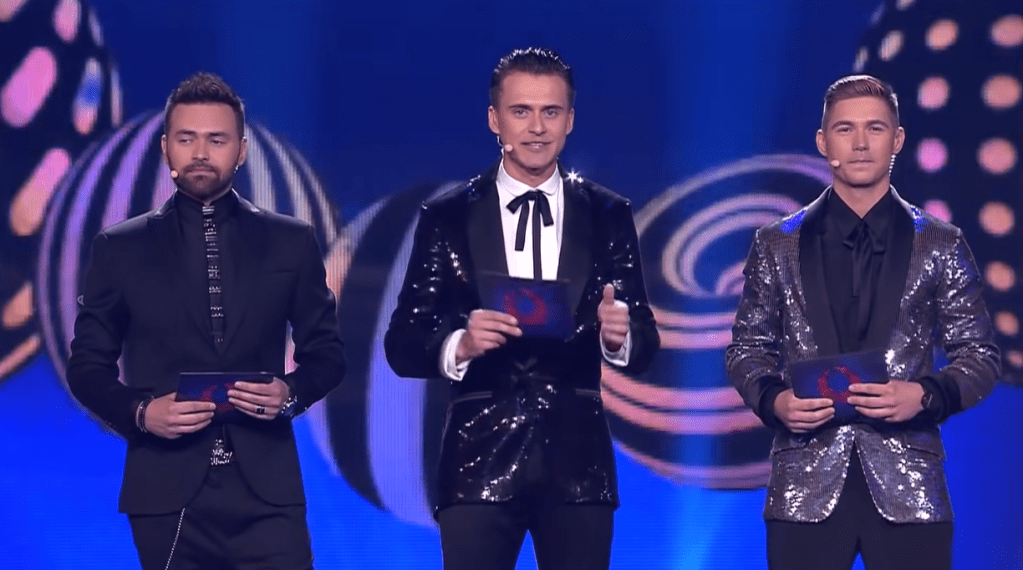 אחרי שהופיעו כל השירים, Skichko ו-Ostapchuk לבושים בחליפות כחולות תואמות בגרין רום, מסבירים על אופן ההצבעה ומזניקים את פתיחת הקווים. ריקאפ למי שלא סבל מספיק.