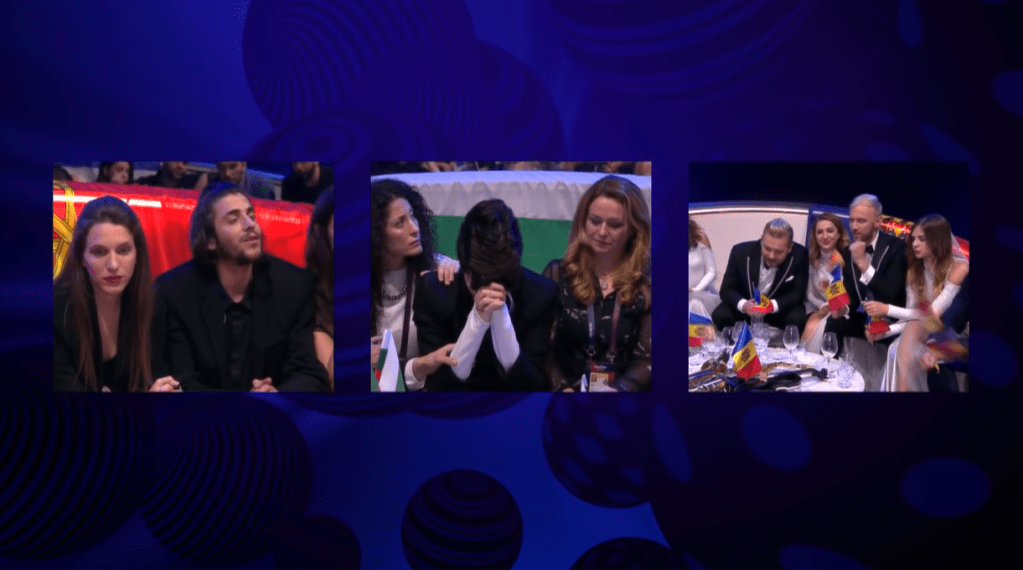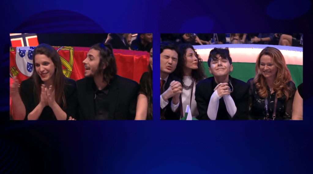 אחרי 11 שירים, נציגת ארמניה דומעת למשמע השיר הפורטוגלי, Skichko ו-Ostapchuk מקריאים ציוץ אחד ומעבירים לשיר האזרבייג'ני.