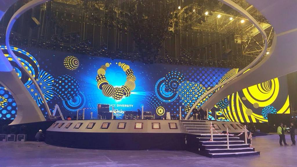 הבמה היא אחת האכזבות הגדולות של השנה. משהו שנראה כמו שילוב של במות 2003 ו-2008 עם אלמנטים נוספים שאנחנו מכירים מ-2010. שם אמירה מיוחדת או קשר למארחת האוקראינית. המטרה הייתה לתת מראה יותר "נשי" ורך לבמה, ללא פינות וקצוות חדים. הבמה עגולה ומעליה קשת שמקנה לה מראה של חללית. באמצע הבמה תלויה "נברשת", שאמורה לאפשר פיצקרים טכנולוגיים שונים. מרחוק השילוב בין השניים נראים כמו רגליים של איש קורע, כאשר מבין רגליו משתלשל משהו מוזר… ההרגשה היא של במה מאד לא זכירה, זולה ונטולת השראה.
