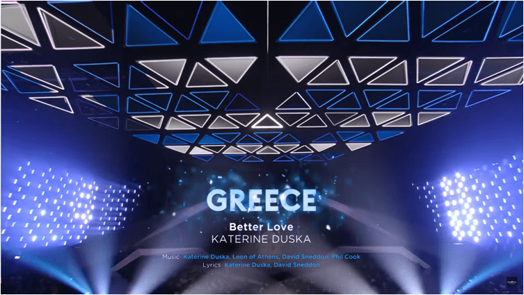 יוון – אינדי-פופ/דרים-פופ, המזכיר מאד את סגנונן של Lana Del Rey ו-Florance + The Machine, בייחוד את "Shake It Out" של האחרונים. הוא להיט אצטדיונים עם השפעות של מוזיקת גוספל ופיזמון המנוני וזכיר. Katerine Duska לובשת שמלה לבנה, שמזכירה את הסגנון של ליידי גאגא. המון קורה על הבמה, לפעמים זה יותר מידי. מבחינת טעם טוב זה קצת גבולי, אבל כן אפקטיבי. השיר מתעורר לחיים בהופעה, שמצליחה להלך על החבל הדק שבין קיטש לתיאטרליות, בלי לעבור אותו. עבודת מצלמה טובה, שחולפת בין זמרות הליווי, קטרין והקהל. זה עוזר להופעה לזרום, ומראה הבנה של השיר. קתרין מצוינת ווקלית, גם אם נשמעת כאילו היא עושה את הקול שלה, במקום לשיר באופן טבעי. קולה נע בין גרוניות עמוקה לפלצטים מרשימים, אך עושה רשם של קול טכני מאד. השיר עצמו לא המקורי ביותר ששמעתם.