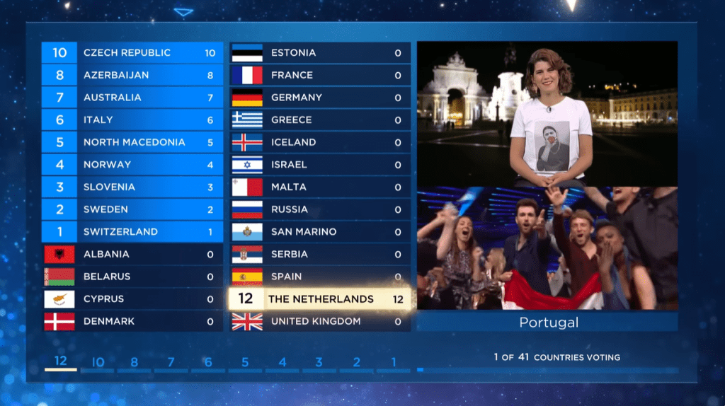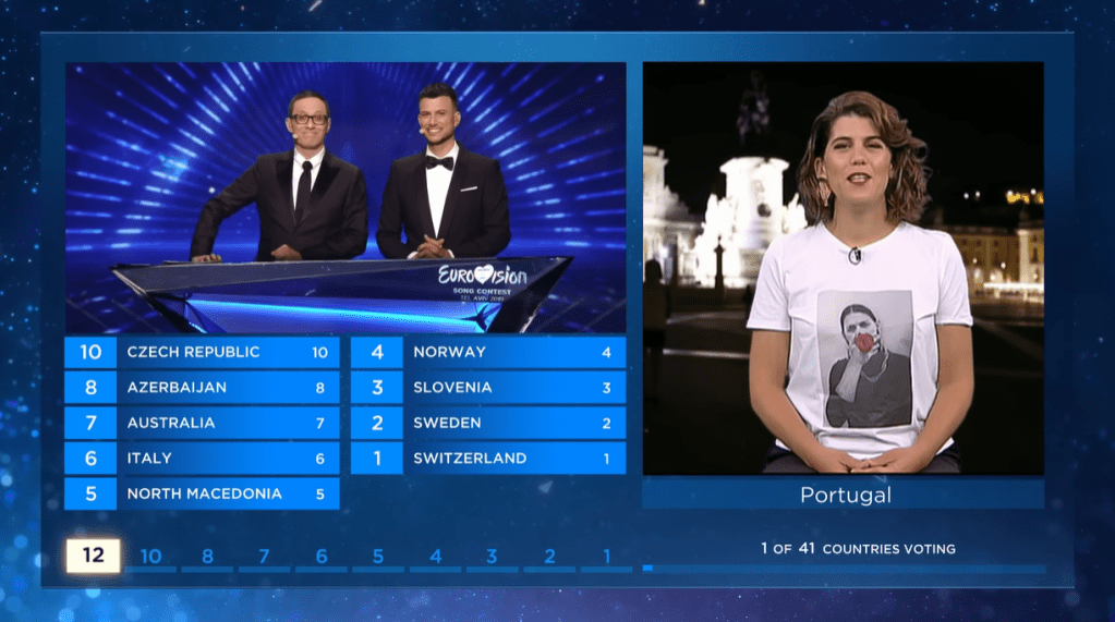 פורטוגל – הטרגדיה הגדולה של האירוויזיון הזה. מי שהתחיל את העונה כפייבוריט, אך סיים בתחתית חצי הגמר. נאמבר אקלקטי ומיוחד, המשלב מוזיקת פולקלור פורטוגלית, צלילי אלקטרו וטכנו, צלילים אפריקאיים שורשיים, צלילים ערביים, לטינים, והכל על רקע קולו המסלסל של קונאן. פאדו מודרני, משולב עם מינימל טכנו וצלילי מוזיקת עולם. יש דמיון בין השיר לבין סגנונו של Childish Gambino מבחינת ההפקה והצלילים האתניים בשיר. Conan Osiris עולה לבמה עם קימונו ירוק בוהק ומסכה שחורה. בוידאוארט מוטיבים אדומים של שושנה גדולה ואש. השילוב של האדום והירוק זורק לדגל פורטוגל. ההופעה הווקלית טובה ומדויקת, לקונאן יש קול מיוחד ושומעים זאת, אבל הכריזמה שעברה בקדם לא מתורגמת טוב על בימת האירוויזיון. הקהל לא הצליח להתחבר אליו, והשופטים עוד פחות. בדיעבד גם לי זה התחיל להיראות יומרני ומלא בחשיבות עצמית ככל שהזמן חלף, וירד מהמקום הראשון שלי. זה עדיין שיר מצוין ומיוחד, אך בעל אימפקט מוגבל ותלוי הקשר ככל הנראה.
