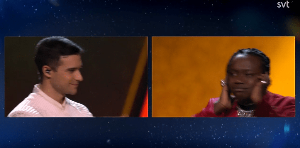 בהופעה החיה: אחת ההופעות האסתטיות של הערב. הוא הפייבוריט של הערב, אבל אם הוא יזכה אני חוזה כישלון של שבדיה באירוויזיון. אמרו שבחזרות הוא היה איום ונורא. הפעם הוא נשמע בסדר. לא הווקליסט המדהים בהיסטוריה, אבל די ברור שבונים אותו להצלחה. זה טופ 2 כמעט בוודאות הערב.