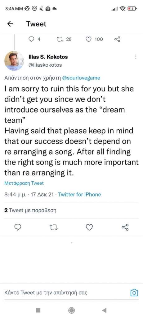חלק מחובבי התחרות שמחו לאחר שיחה של אחד מהם עם נציגת יוון, Amanda Tenfjord, כי ה-Dream Team לא יהיו מעורבים בשיר היווני השנה. עם זאת, שמחתם כנראה הייתה קצת מוקדמת, ו-Ilias Kokotos ציין כי הם פשוט לא מכנים עצמם כך, לכן לא הזמרת לא הבינה את השאלה: