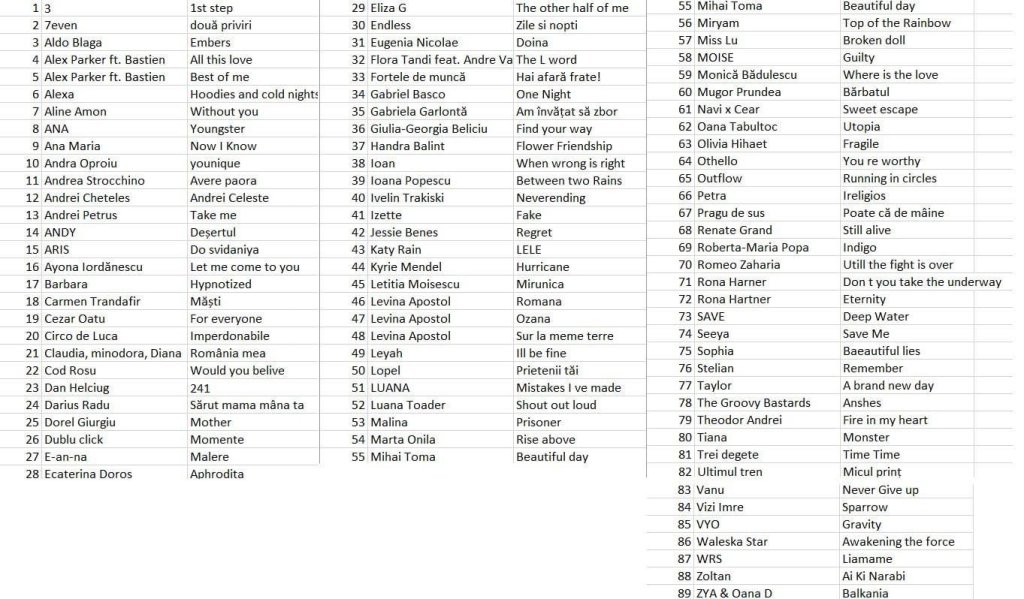 קודם לכן, חלק משמות 94 השירים נחשפו בתכנית הבוקר ברומניה של יום רביעי: