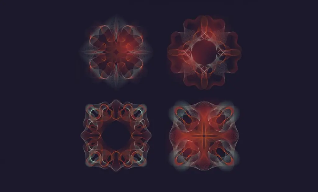 תבניות אלו, הידועות גם כפיגורות קלדני, יוצרות, במקרה של צלילים הרמוניים, צורות וקומפוזיציות גיאומטריות סימטריות, בדומה לתצורות מנדלה.