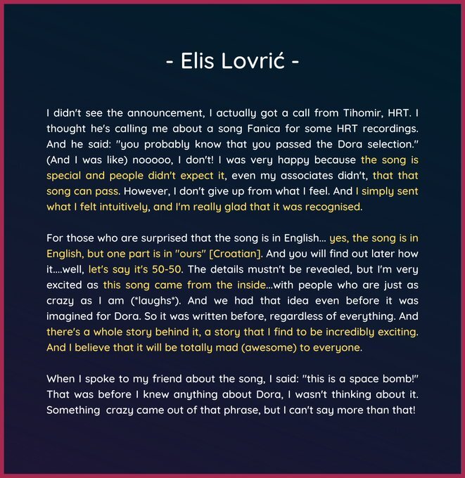 שירה של Elis Lovrić יהיה בשתי שפות: