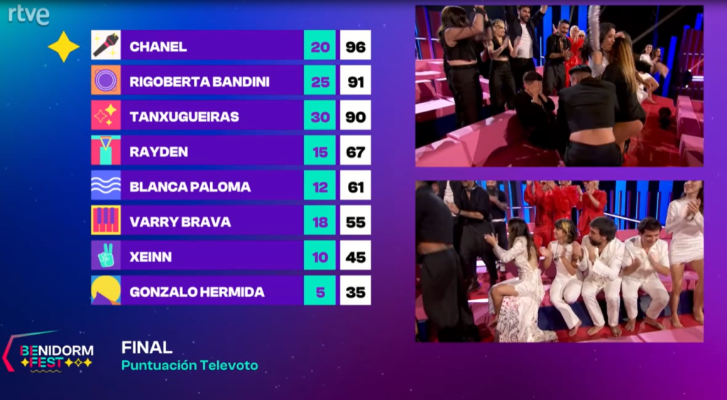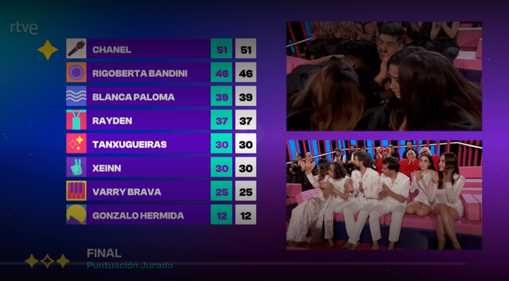 בהופעה החיה: הפייבוריטית הענקית של הקדם. ההופעה זהה לזו של חצי הגמר, וזה כאמור עובד לטובתה. ניכר שזה הולך להיות ספרד 2022. מאממה, מאממה, מאממה!