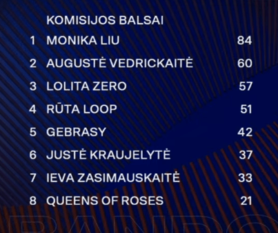 קולות הקהל והשופטים מתורגמים ל-1-8, 10 ו-12 וההחלטה היא פה אחד! נציגת ליטא היא Monika Liu!