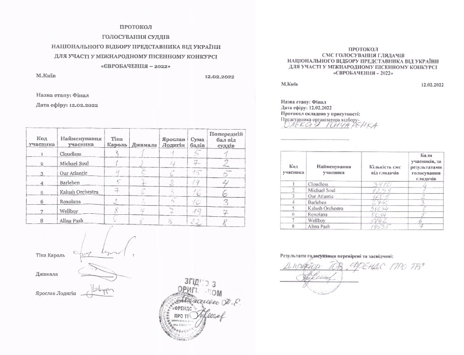 בשבוע שעבר, התפטר Yaroslav Lodygin, ששפט בקדם, מתפקידו בדירקטוריון של רשות השידור האוקראינית. ההתפטרות באה על רגע בעיות בהצבעות הטלווטינג בקדם, אשר Lodygin היה אחד ממארגניו. Lodygin גם התנצל על כך שהעליב את חברי להקת Kalush Orchesttra בקדם וציין שאוקראינים לא צריכים להציג עצמם בפלטפורמה בינלאומית כאנשי הרים ויערות. מקור.
