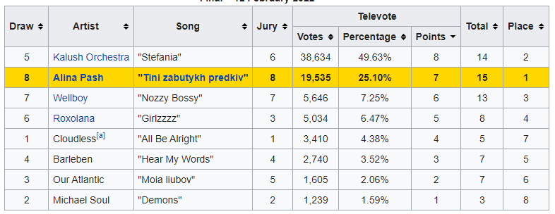נחשפה התפלגות הקולות בקדם האוקראיני, ומסתבר כי Kalush Orchestra זכו בגדול בהצבעת הקהל: