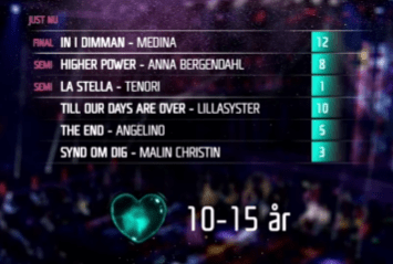 Medina – In i dimman – אתנו פופ לטינו-בלקני מסיבתי, שלא הייתם מצפים לשמוע מהזמר. יש אפילו שימוש בקאזו. אפקטיבי ומרענן בליינאפ של המלודיפסטיבלן הנוכחי. לא משהו ששבדיה אי פעם שלחה, וגם לא נראה לי שהפעם היא תשלח. זה מאד המנוני, המלודיה זורמת, מאד קריבית, דרמטית לפרקים ונינוחה ברגעים אחרים. הדרופ אחרי הפזמון הוא מאד האוס-נצחונות. לא בטוח עד כמה השבדים מסוגלים לעכל את זה. 3/5.