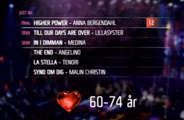 Malin Christin – Synd om dig – בלדת פסנתר עצובה ורגשנית, סטייל Molly Sandén. מינימליסטי ואינטימי. לא הכי קומפטטיבי. זה חמוד, נשמע אפילו תמים, למרות שכבר שמענו המון שירים כאלה, וזה לא באמת מחדש. הפזמון ממש מחדש ונשמע עצלני משהו. היא עצמה מבצעת את השיר בעודה מנגנת על קלידים. בבית השני נכנס ביט. בוידאוארט על הקלידים ועל הרצפה מוצגות ידיים. בפזמון היא קצת צועקת, וזה לא עובר טוב. 3/5.