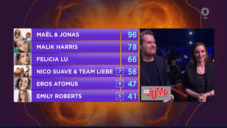 Emily Roberts – Soap – היא לובשת אאוטפיט תכלת שקוף עשוי פלסטיק? עם חגורת כסף גדולה. לצידה ארבעה רקדנים ורקדניות בתוך בועות. זה Avril Lavigne לעניים, פופ-פוסט-גראנג', ואני חושב שהיא שכחה את המילים באמצע השיר. היא מגחכת וממשיכה. זה כנראה מקום אחרון הערב אחרי ההופעה הזו. לא הכי מקצועי. גם השיר הוא פושר עד קר. 2/5.