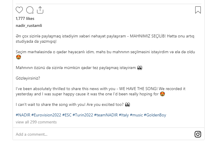Nadir Rustamli ציין כי רשות השידור בחרה את השיר שהוא העדיף. מקור.