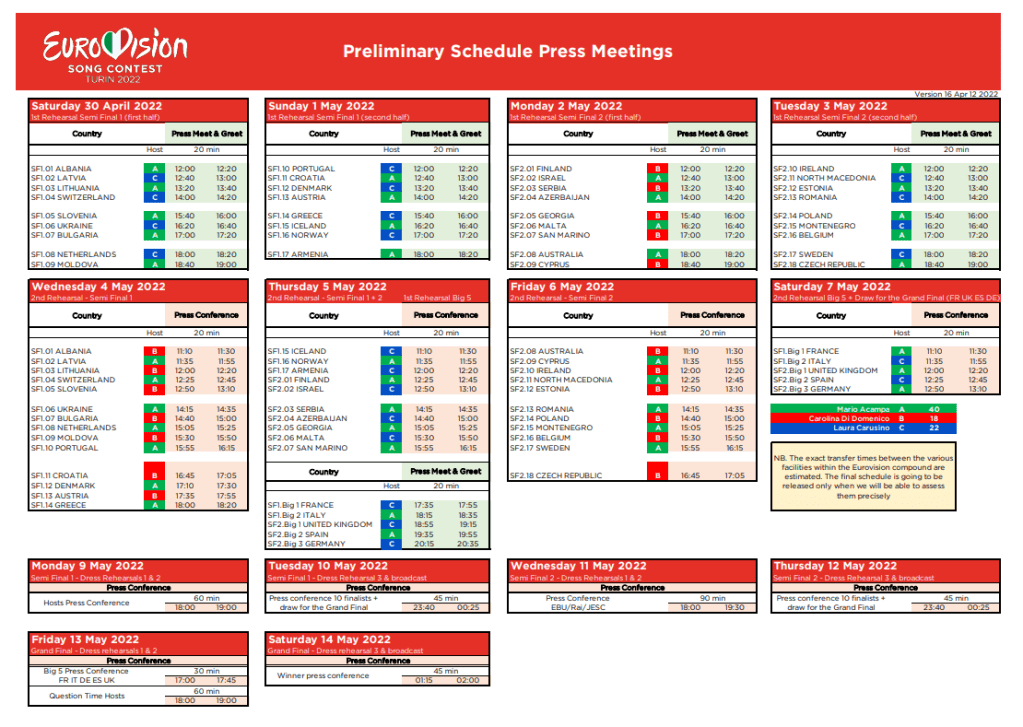 * ה-Eurovillage צפוי להיות פעיל בין התאריכים 7-14/05, ולכלול הופעות של למעלה מ-200 אמנים. הלו"ז המלא יפורסם בשבוע הבא. מקור.