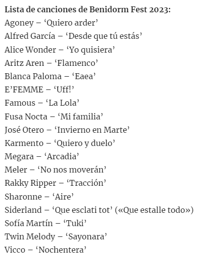 מתמודדי פסטיבל בנידורם הופיעו במופע מיוחד של הטלוויזיה הספרדית בביצוע גרסאות כיסוי: