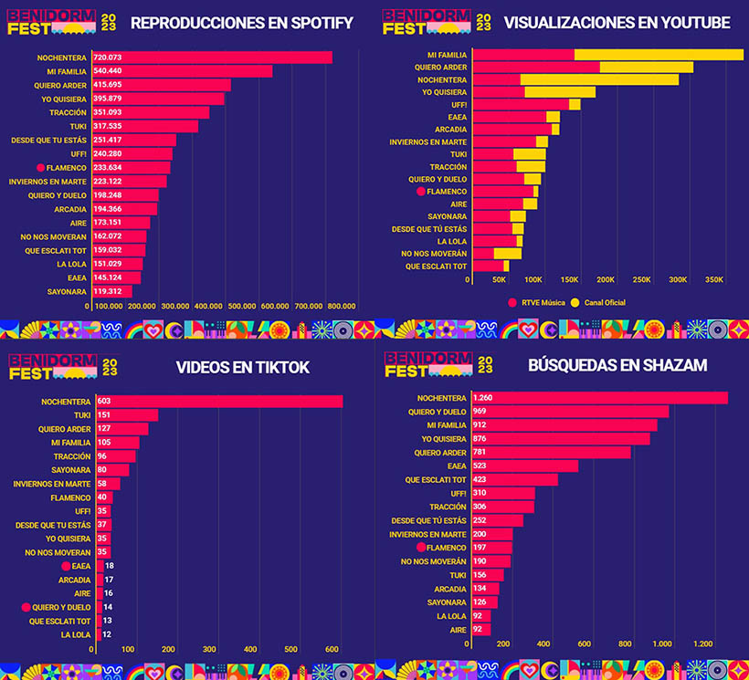 קצת מידע סטטיסטי על השירים המועמדים לפסטיבל מבחינת השמעות וצפיות: