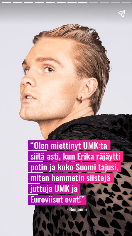 Benjamin מספר שהשתתפותה של Erika Vikman גרמה לו להתמודד בעצמו בקדם, לאחר שלדבריו הראתה "לפינלנד כמה מגניבים האירוויזיון והקדם":