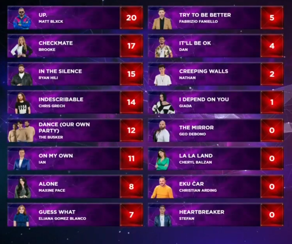 מלטה בוחרת. 16 שירים הגיעו לגמר, והתמודדו על ייצוג האי הים תיכוני בליברפול.