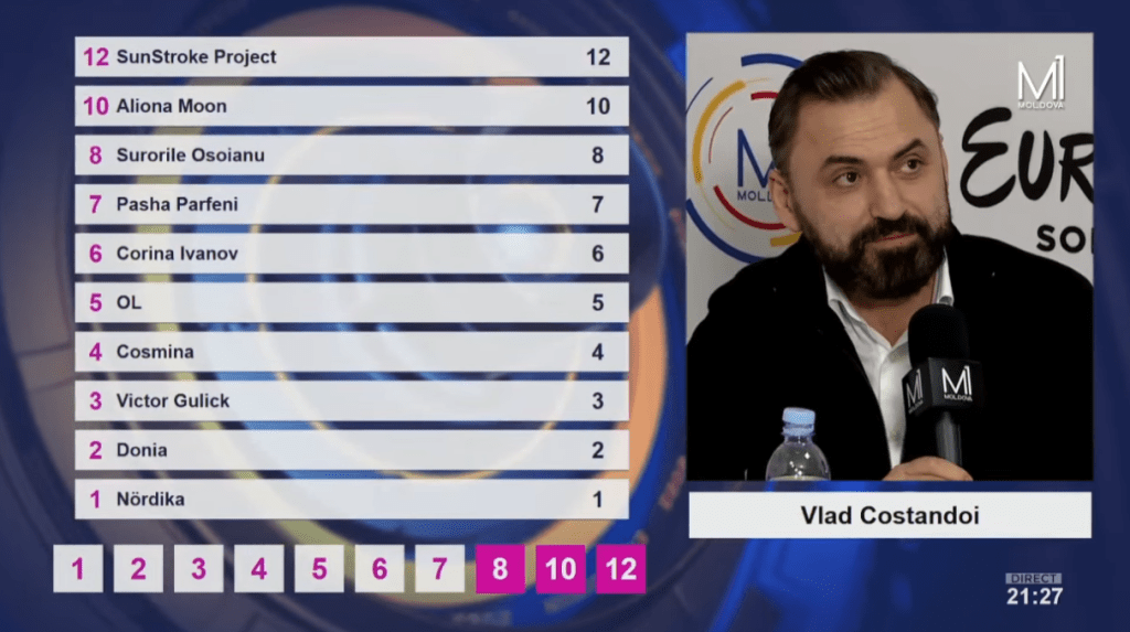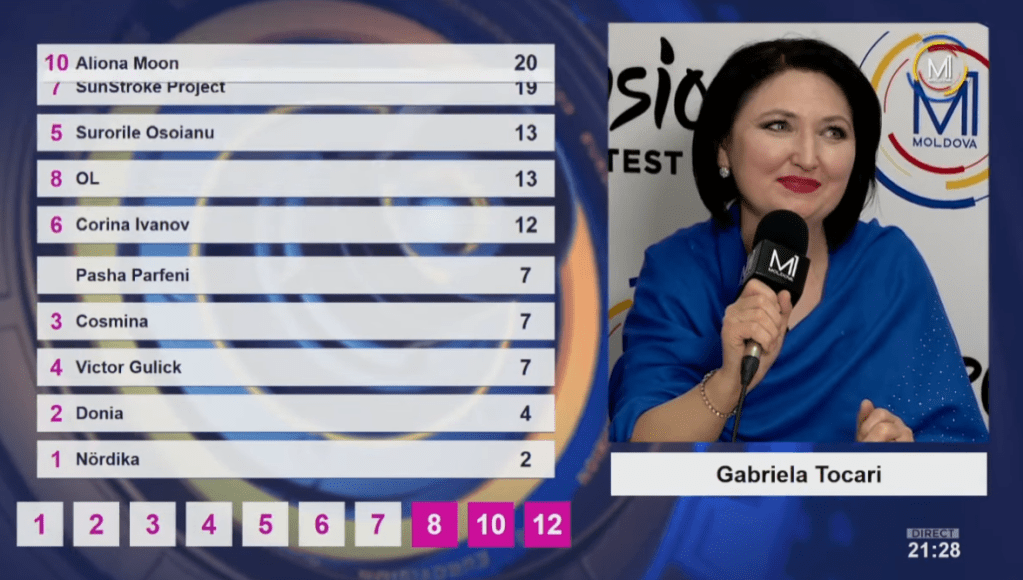Pasha Parfeny – Soarele şi luna – בסטודיו: נציג 2012, וגם המלחין של השיר מ-2013, לא מוותר. אחרי שהפסיד ב-2020 וטען לשחיתות, הוא חוזר להזדמנות נוספת. המנון אתנו-פופ עם אלמנטים שבטיים, שמצליח להישמע אוניברסלי. זה קצת נוסחתי, אבל הוא מקבל נקודות זכות על המלודיה הנאה וההפקה המצוינת. 3/5.