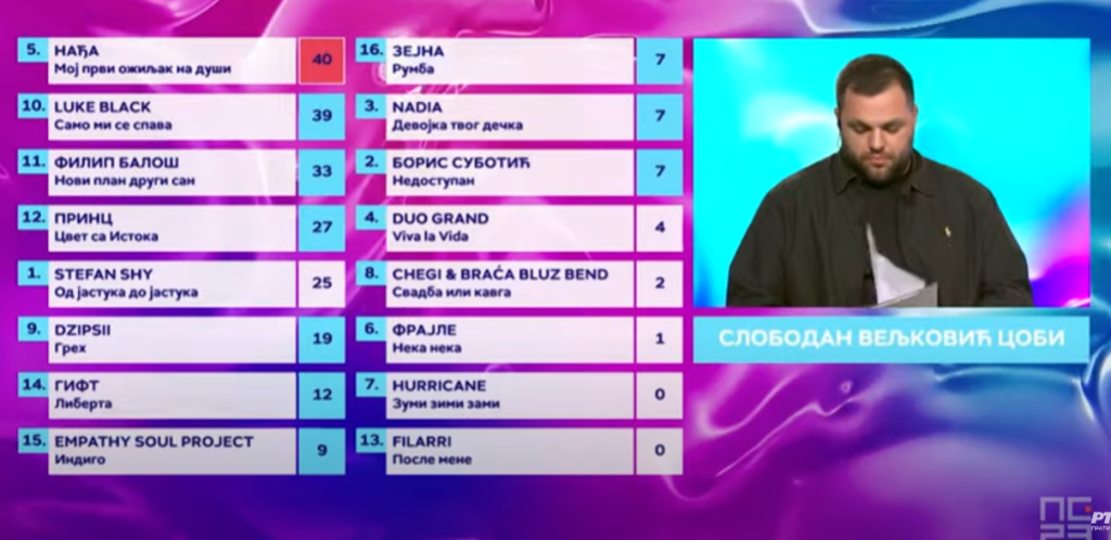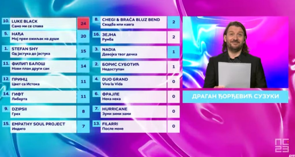 לוח הניקוד אחרי הצבעתו של Dragan Đorđević: