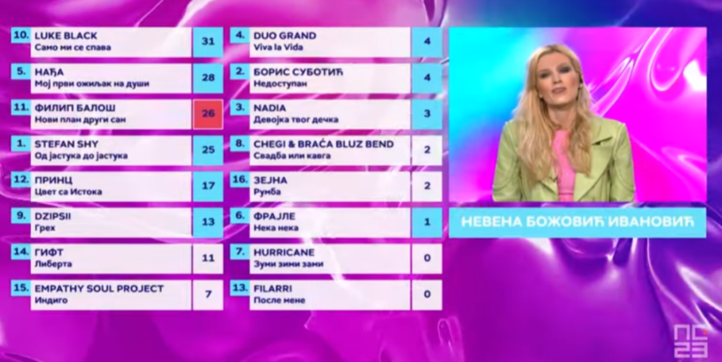 לוח הניקוד לאחר הצבעתה של Nevena Božović: