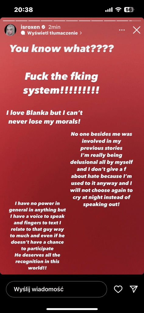 בינתיים, נציגת פולין, Blanka, מנסה להתמודד עם השנאה ברשת ועם ההאשמות בדבר הרמאות בקדם: