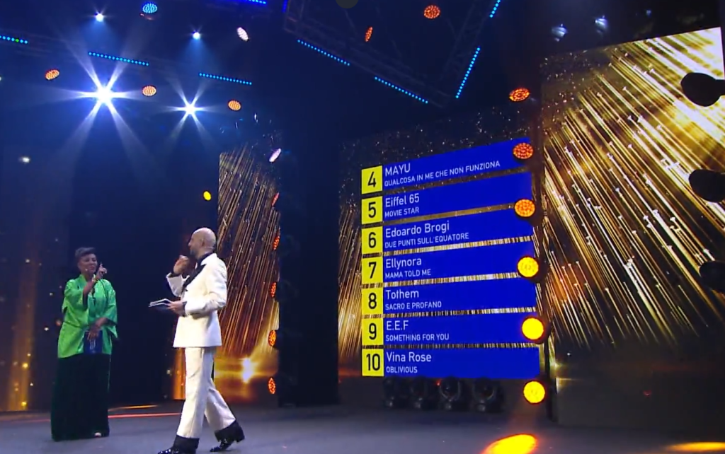 הקדם נערך ב- Teatro Nuovo שב-Dogana, סן מרינו. המנחים כמו בשנה שעברה הם Jonathan Kashanian הישראלי-איטלקי והאחת והיחידה, נציגת המדינה בשנים 2020-1, Senhit. אחרי פתיחה ארוכה וקשה מנשוא, הכוללת הצגת מכובדים ופרוטקציונרים כאלו ואחרים, מציגים סרטון של הקדם בשנה שעברה. באמת שאין במה להתגאות.