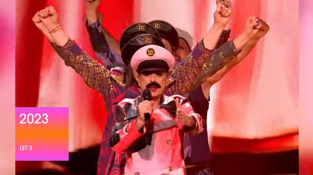 לאחר הטה דאום, ריקאפ של חלק ממעפילי חצי הגמר הראשון. המנחות בסרטון מוקלט מראש. לאחר מכן, שתיהן מופיעות בגרסה פארודית לזוכה אירוויזיון 2023, "Tattoo" של Loreen, עם הטוסטר והכל.