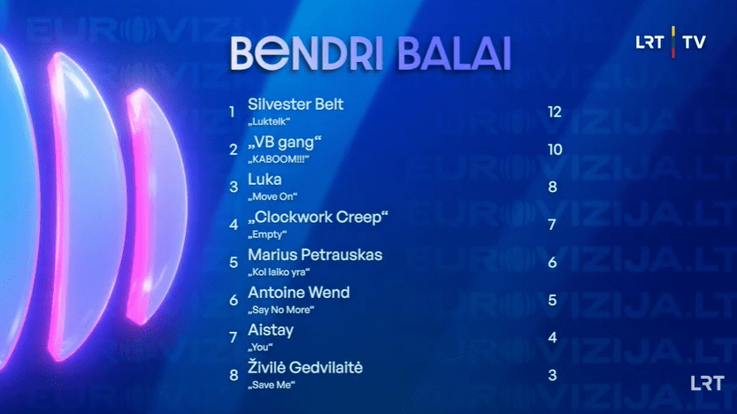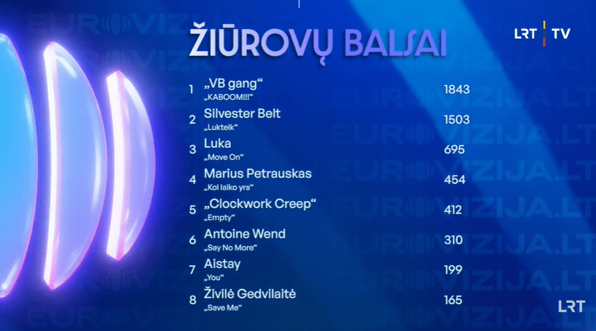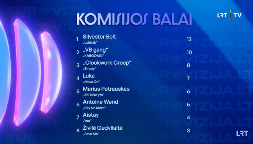 ברוכים הבאים לטרום הגמר ראשון של הקדם הליטאי, ה-Eurovizija.LT. הפורמט עצמו כולל חמישה טרומי גמר, וגמר. בשנה שעברה סיימה המדינה במקום ה-11 בגמר, עם השיר "Stay" של Monika Linkytė. האם השנה יש לליטא את השיר שיזניק אותה גבוה בתחרות?