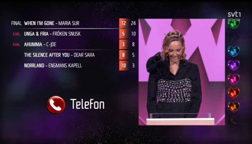 הקווים פתוחים כעת עבור חמשת השירים הנותרים. כעת שוב היכל התהילה של המלודיפסטיבלן אליו נכנס Kristian Luuk.