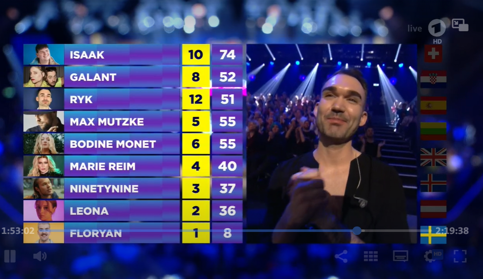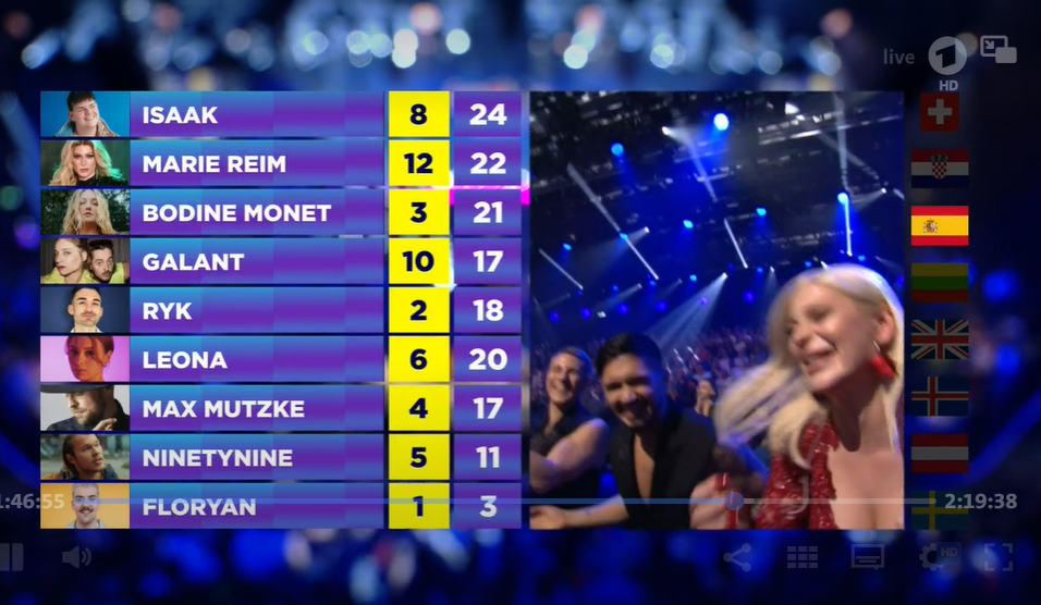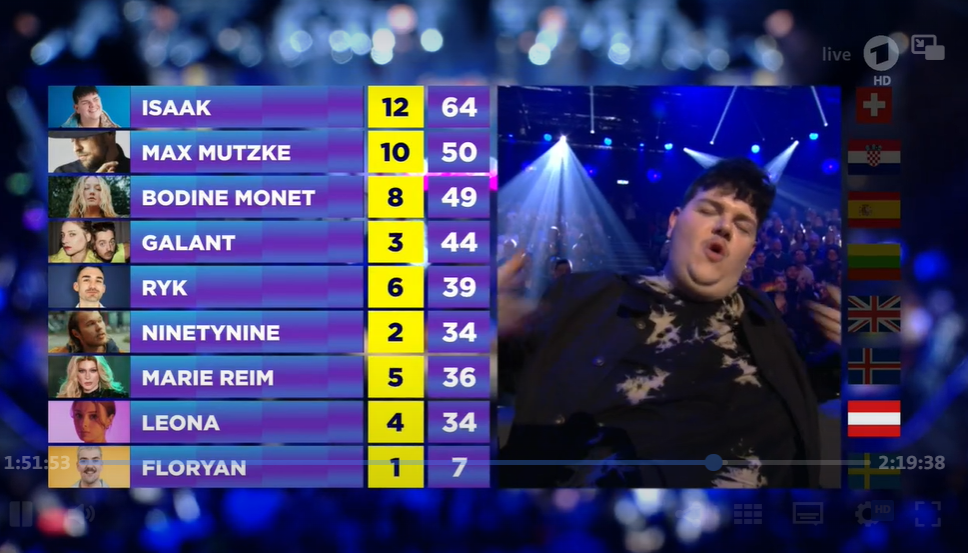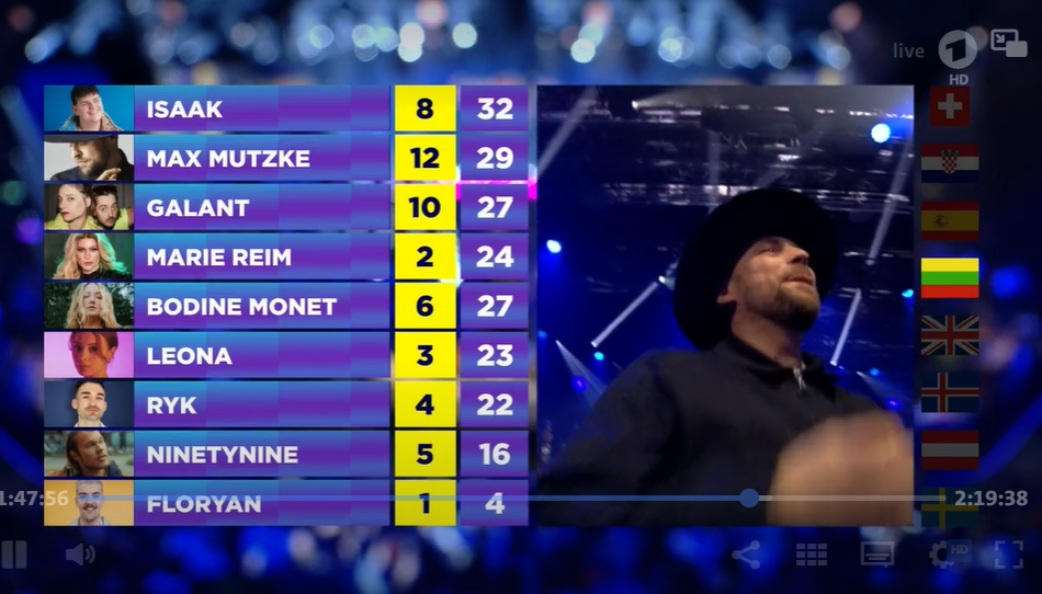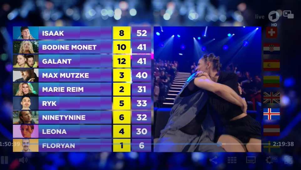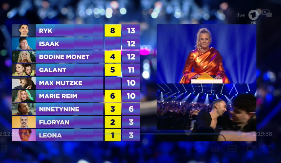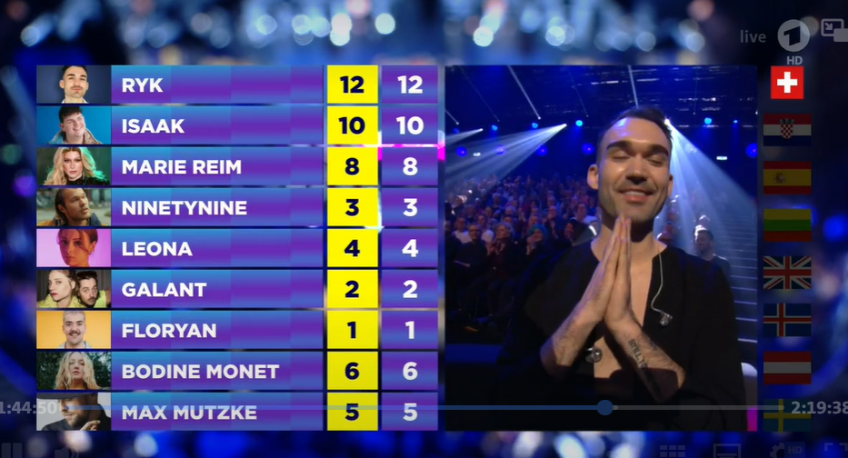 10 נק' הולכות ל-Max Mutzke, מה שאומר שה-12 נק' הולכות ל-Isaak: