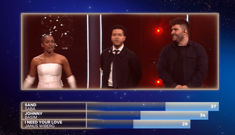Janus Wiberg – I Need Your Love – בסקירת השירים כתבתי: "בלדת פופ, המנסה לחקות זמרי פופ בריטיים. אין כאן בשורה חדשה, זו יכולה להיות בחירה בטוחה עבור דנמרק, בשנה שהרבה ישלחו יציאות מחוץ לקופסה. אולי דווקא משהו שמרני ומאד רגיל יכול לסחוף את הקהל והשופטים. השופטים מתים על שירים כאלה, במיוחד אם הם מלווים בביצוע ווקאלי מרשים. לזמר קול גברי וקצת צרוד, מה שתורם לשיר. בסוף השיר יש תוספת של כלי מיתר כדי לתרום לעושר המוזיקלי של השיר, וכמובן לדרמה. 3/5."