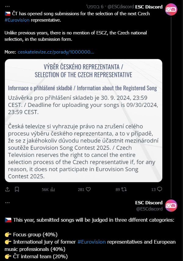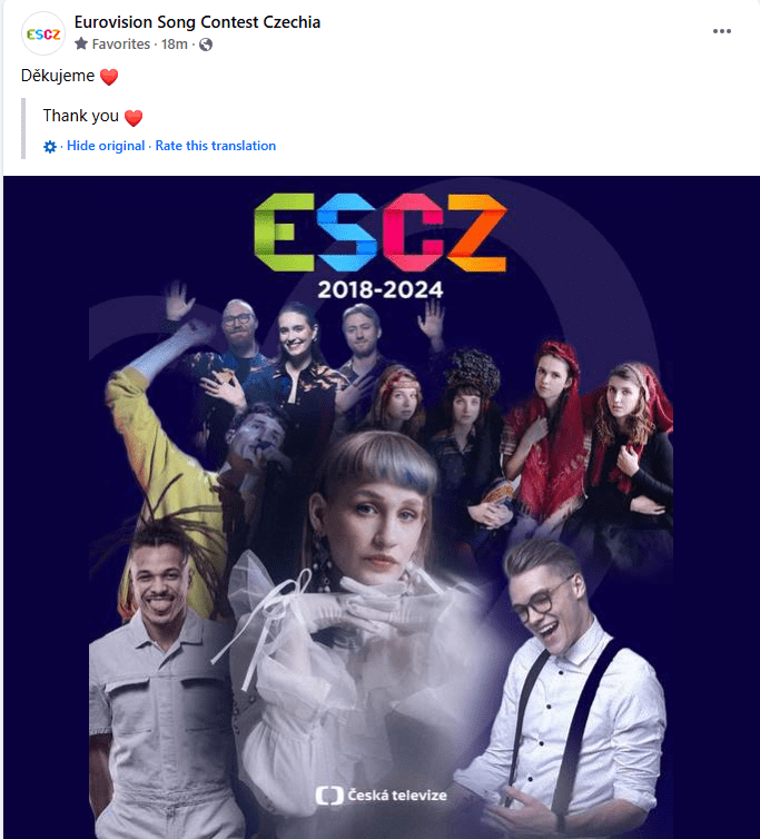 צ'כיה הולכת על בחירה פנימית, ועמוד הקדם אירוויזיון הצ'כי נפרד מקוראיו: