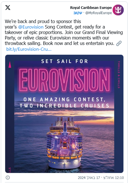 * Royal Caribbean חוזר לתת חסות לאירוויזיון גם ב-2025:
