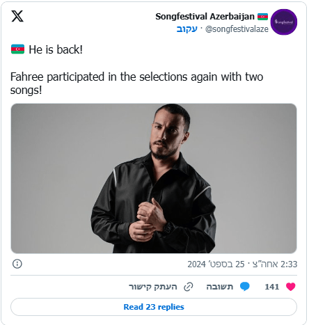 עוד דווח כי Rahtur, Arfa ו-Ilseyn שלחו שירים.