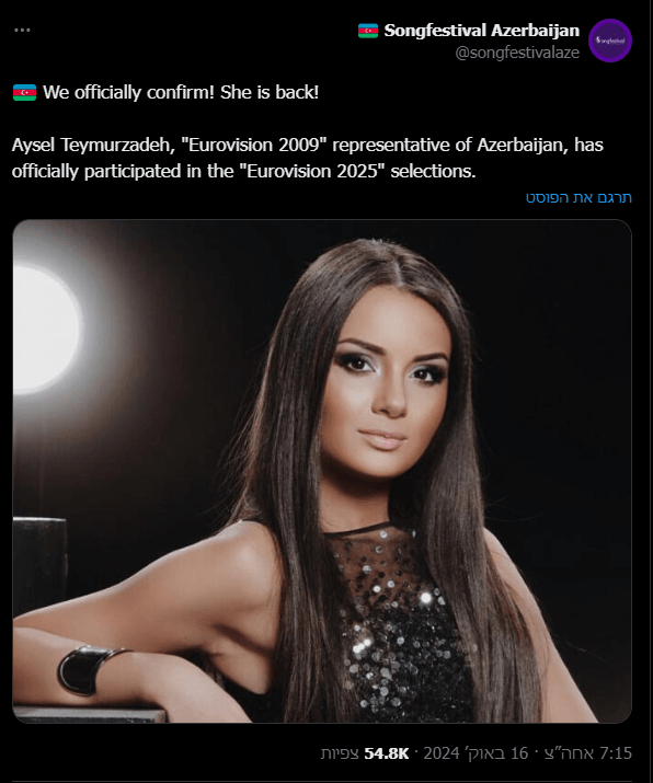 וגם של-Aysel Teymurzadeh, נציגת 2009, יש שיר שהוגש: