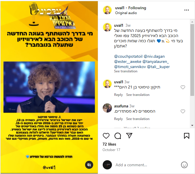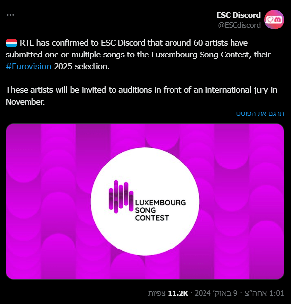 * ב-24/09 נפתחה ההרשמה למתנדבים עבור האירוויזיון. טופס הרשמה.