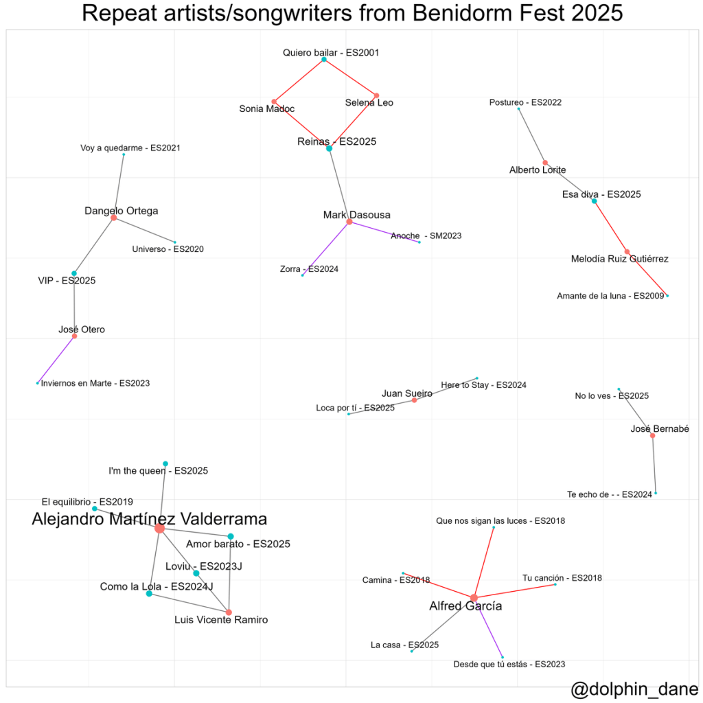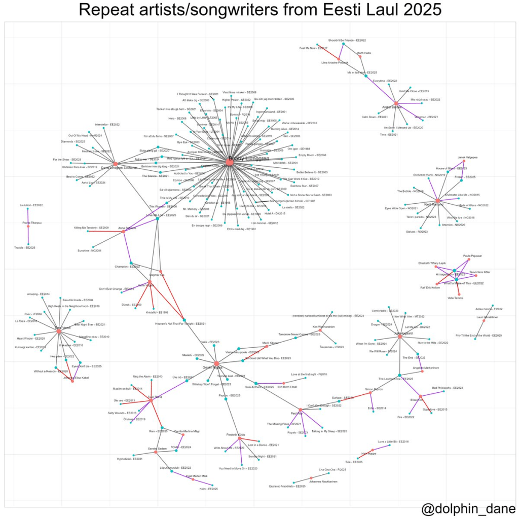 הנה מפה של כל הכותבים, ושירים שכתבו בעבר לקדמים ולאירוויזיון: