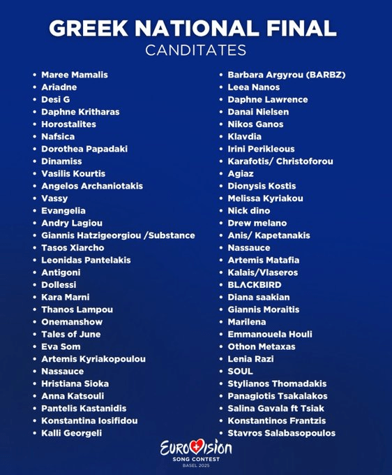 רשות השידור היוונית קיבלה 187 שירים. הקדם ייערך ב-29/01/25. מקור.