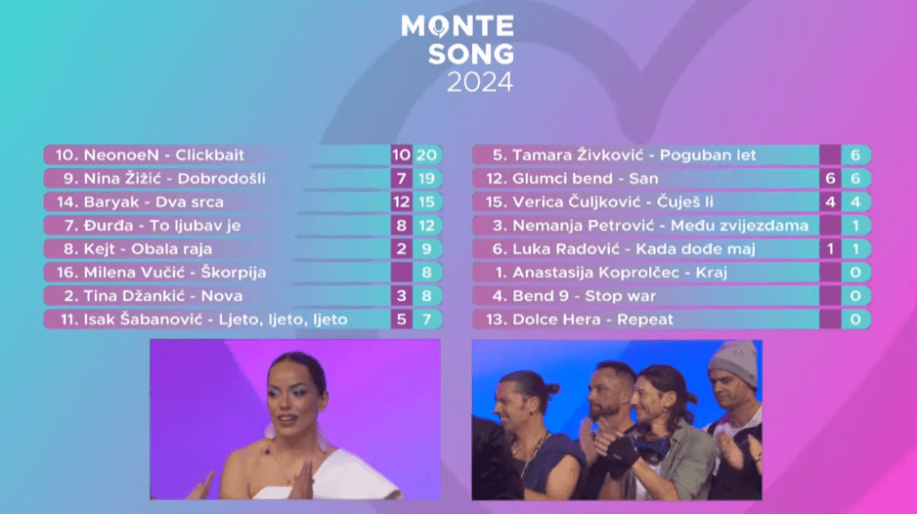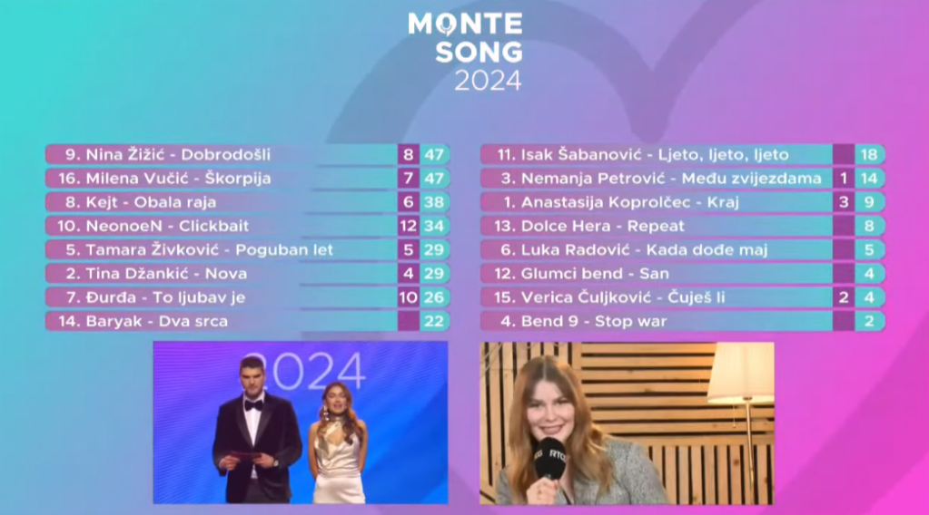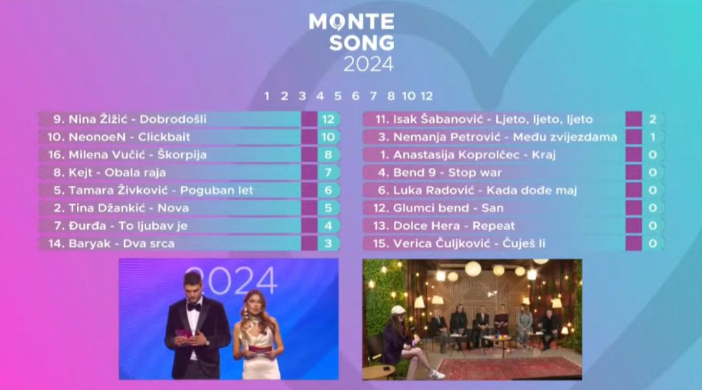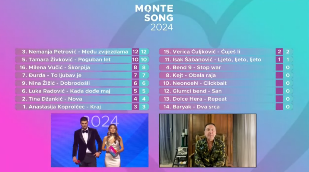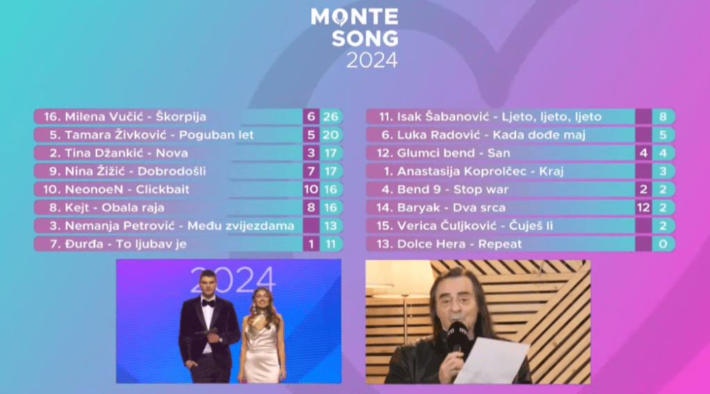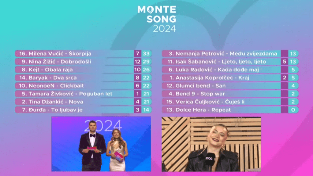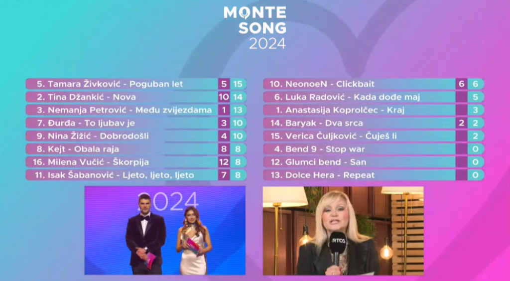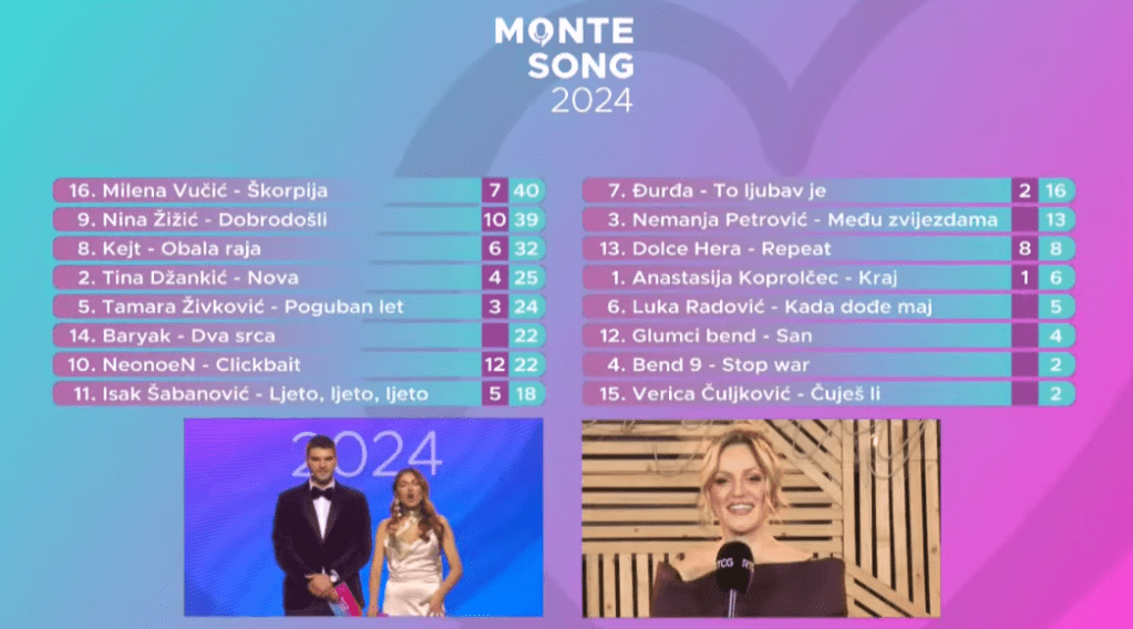 מונטנגרו חוזרת אחרי היעדרות של שנתיים. הערב היא בוחרת את השיר לבאזל. 16 שירים מתמודדים, מתוכם ייבחר הערב הנציג על פי הצבעת השופטים והקהל.