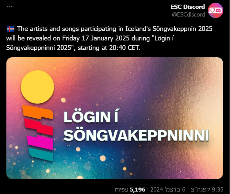 המשתתפים בקדם האיסלנדי ייחשפו ב-17/01/25 בערב:
