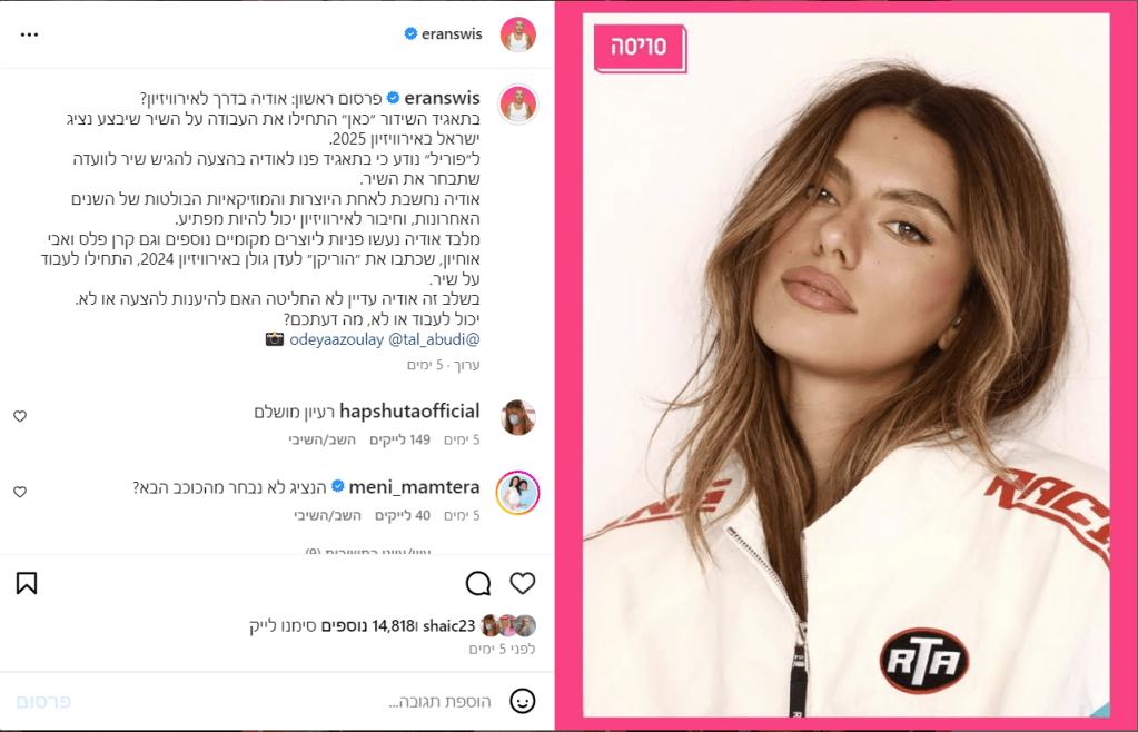 חוץ מאושר כהן, פורסם כי גם אודיה ויסמין מועלם קיבלו פנייה לכתוב את השיר הישראלי לאירוויזיון: