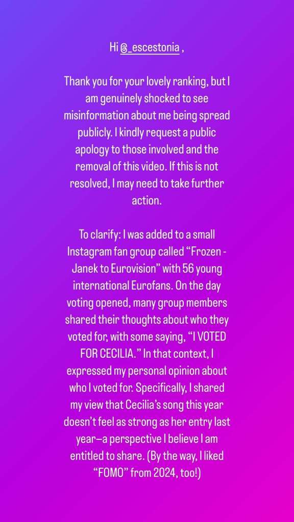 במקביל Janek מגן על עצמו, לאחר שההערות שכתב בקבוצת פייסבוק סגורה על Cecilia דלפו: