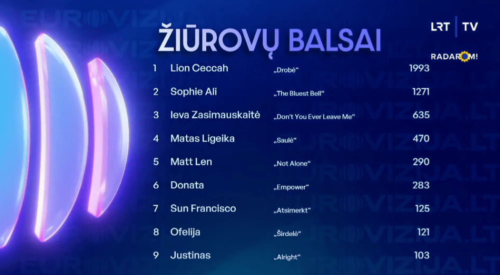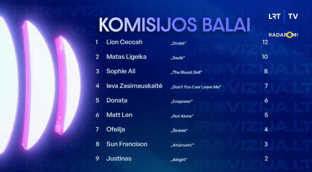 תוצאות איומות. שני שירים, שסיימו במקום השלישי בטרום הגמר שלהם נבחרים לקבל "גלגל הצלה" לגמר: "Visaip man reik" של Black Biceps ו-"Ar mylėtum" של Liepa. בסה"כ 12 שירים יתמודדו בגמר הקדם: