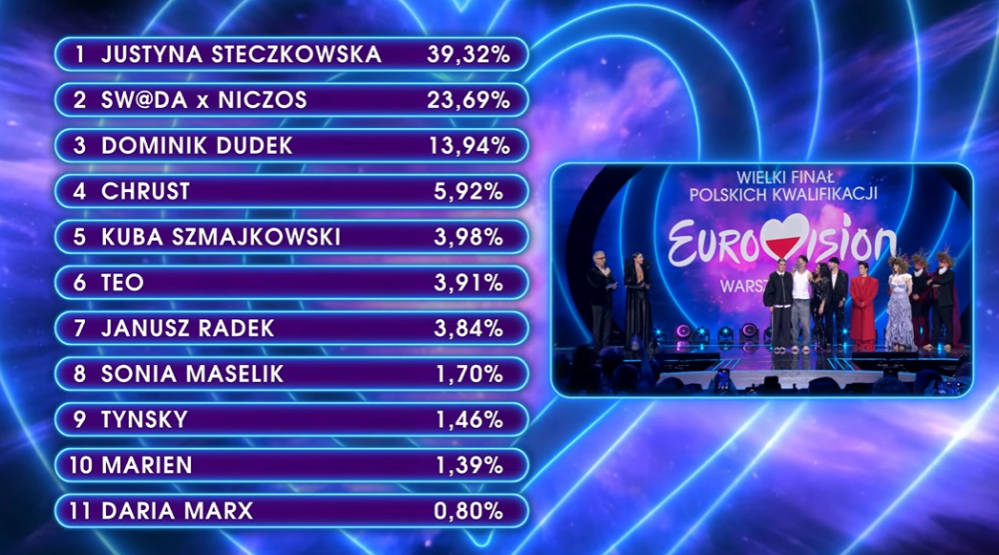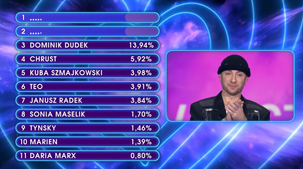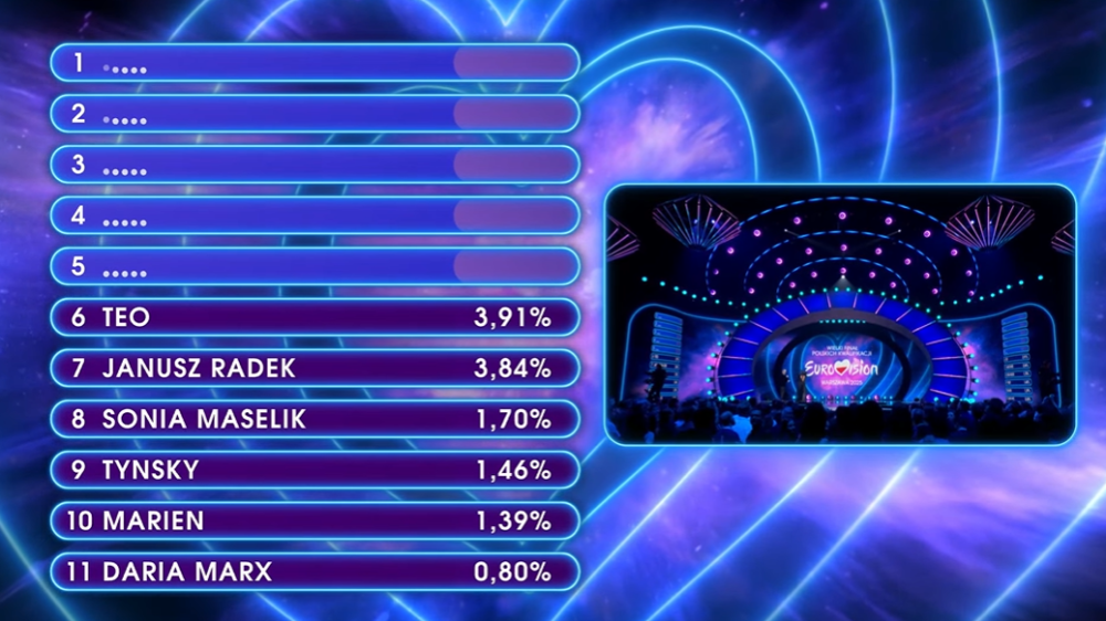 ברוכים הבאים לקדם הפולני. מי ימשיך את דרכה של Luna וינסה להביא את האירוויזיון לוורשה? התוצאות ייקבעו על פי הצבעת הקהל בלבד ב-SMS.
