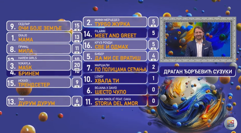 ברוכים הבאים לגמר הקדם הסרבי, ה-Pesma za Evroviziju. שישה עשר שירים העפילו משני חצאי הגמר לגמר. מי ייצג את סרביה באירוויזיון?