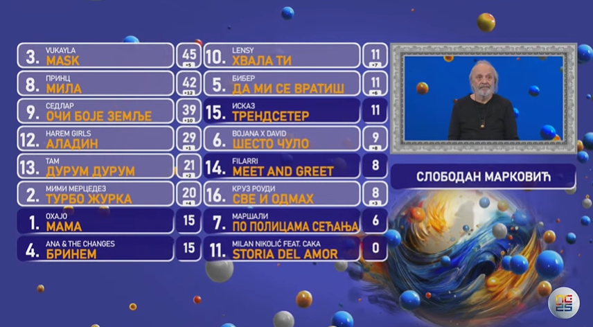 לוח הניקוד לאחר הצבעתה של Slobodan Marković: