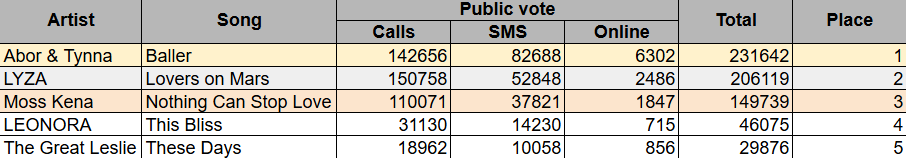 ביום שני נפתחו קווי ההצבעה עבור גמר הקדם. באותו יום גם התפרסם סדר ההופעות בגמר וניתן לראותו כאן.